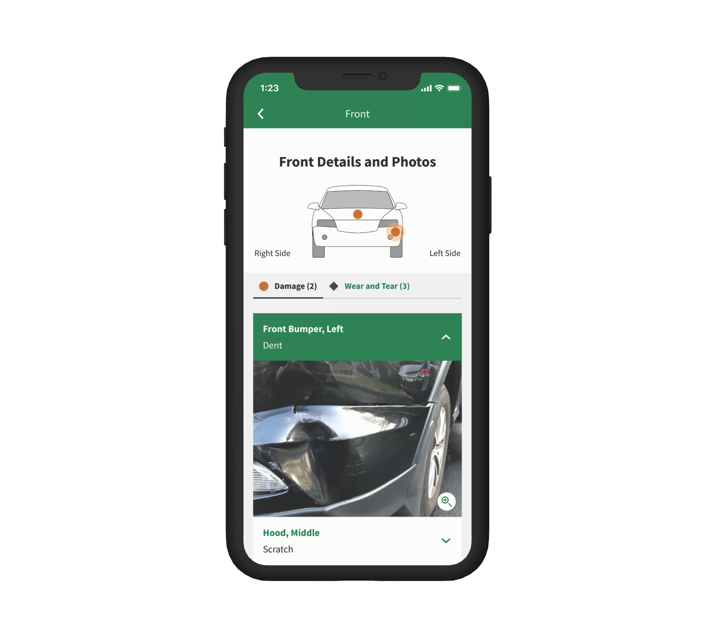 • Schematic diagrams of each side of the vehicle, so customers can quickly locate which sides of the vehicle include pre-existing damage