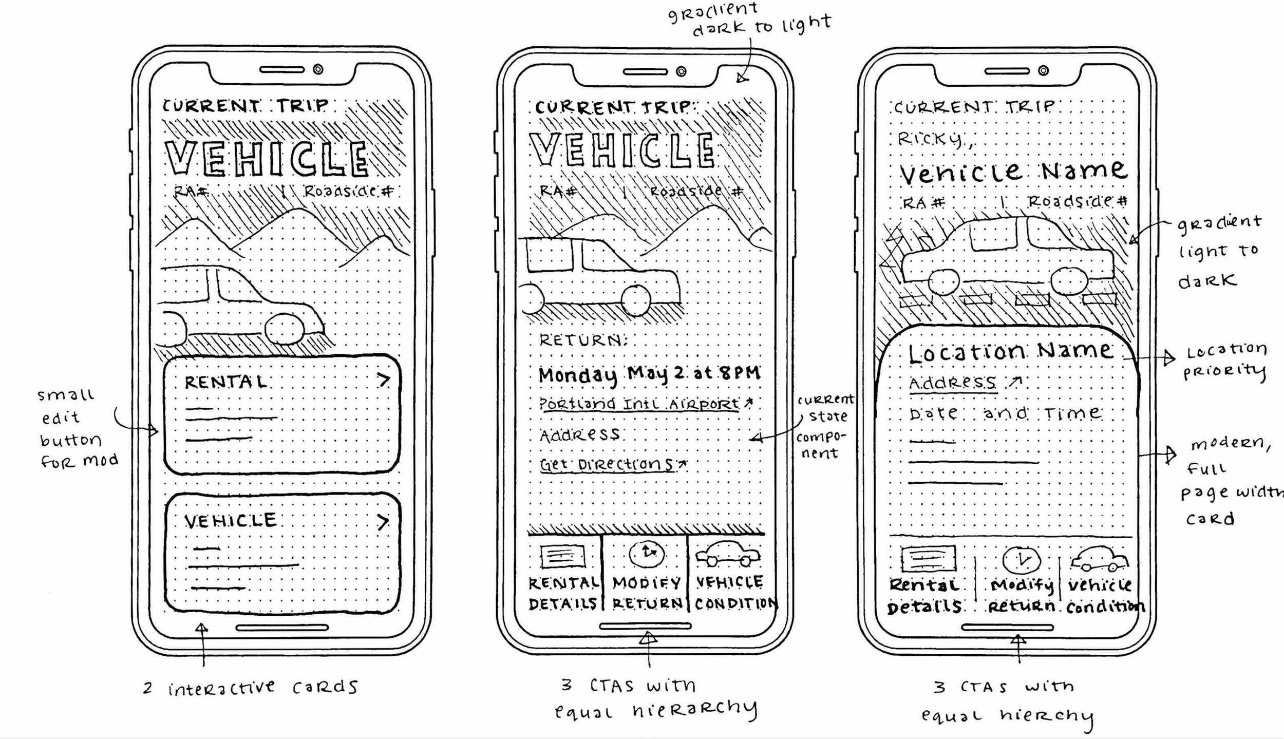 Iteration sketches of the renter dashboard