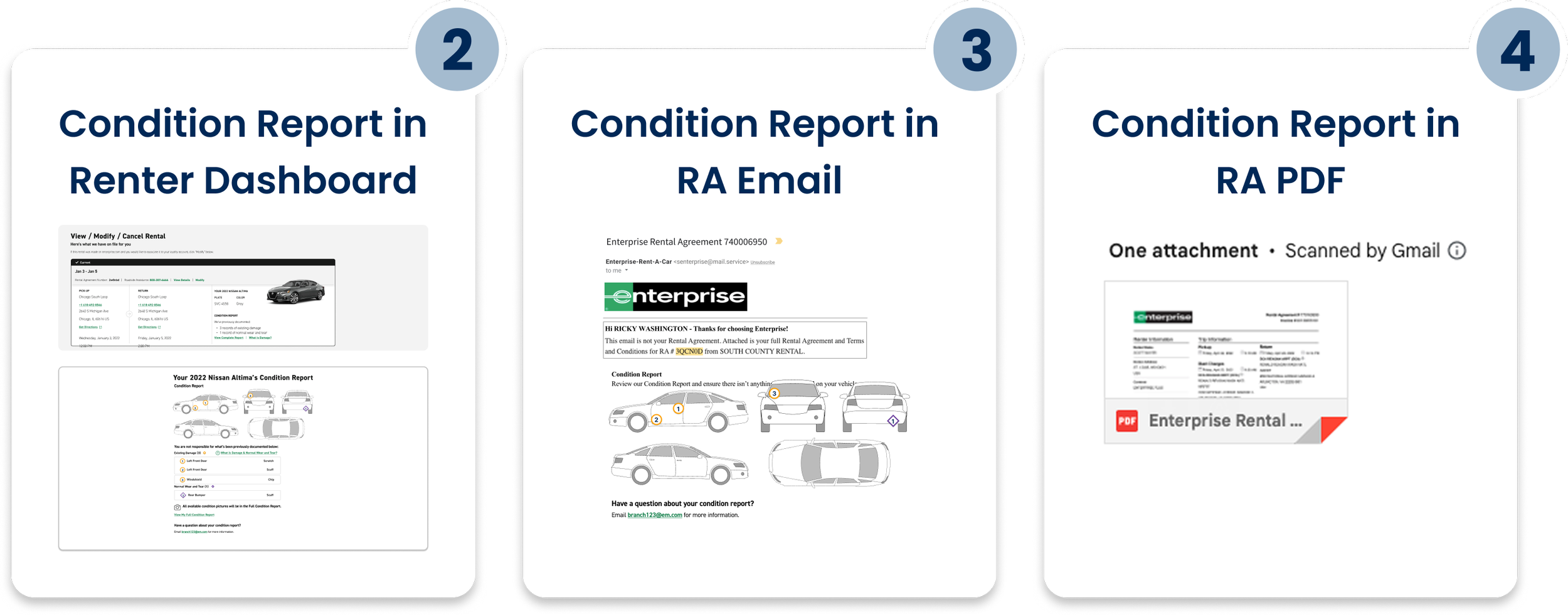 The Vehicle Condition initiative is designed for all car rental brands under the Enterprise Mobility portfolio (Enterprise Rent-a-Car, National, and Alamo). New interactive vehicle condition reports help customers clearly understand their rental vehicle’s pre-existing condition—reducing damage disputes, easing concerns about financial responsibility, and strengthening brand trust.